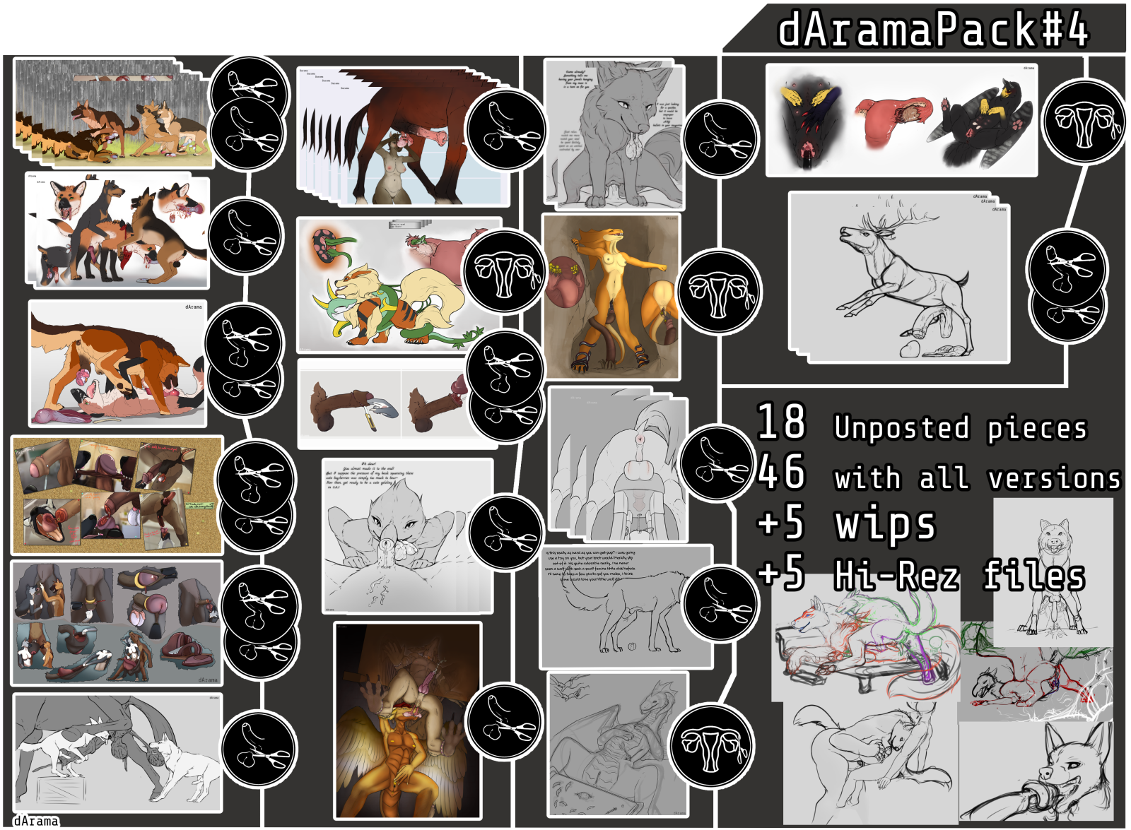 Hello fellow gonad & related-things-in-misfortune enjoyers. It has been a hot minute since my last art pack but here we are. Times have been a little rough and not everyone has the cash for some weirdo furry porn, but I hope you'll consider purchasing this art pack to treat your devilish little hearts! Life has gotten a bit more expensive so to compensate for platform fees I have upped the price to 11€ I hope that won't be a deal breaker!